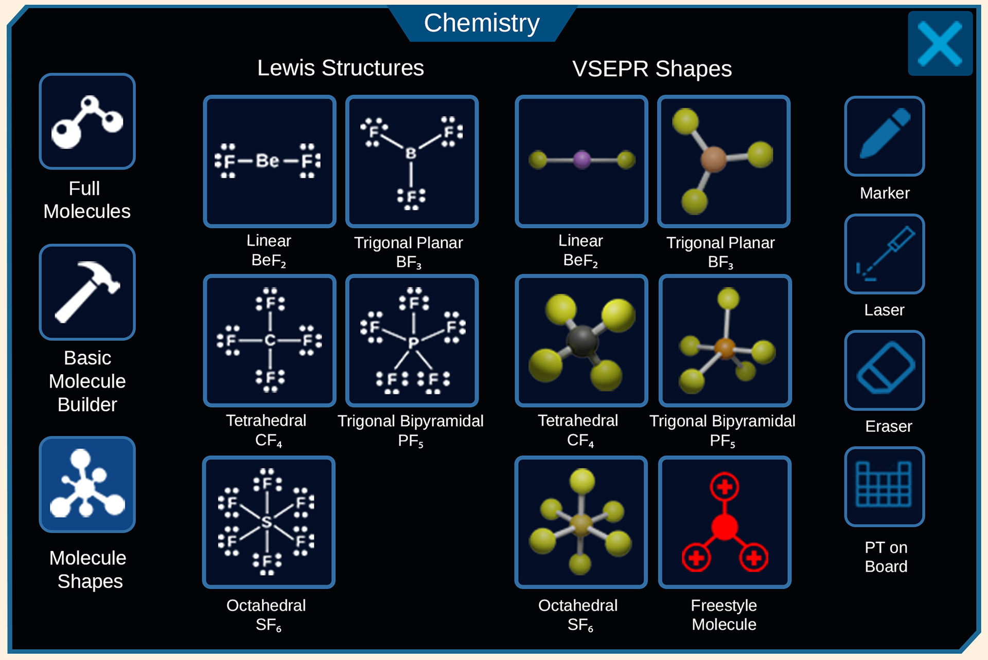 In-App Experience: Demonstrating the spatial tablet in action. By designing a clean, low-friction interface, users can seamlessly navigate tools to spawn and interact with 3D educational elements, like these proportionally accurate atomic models.