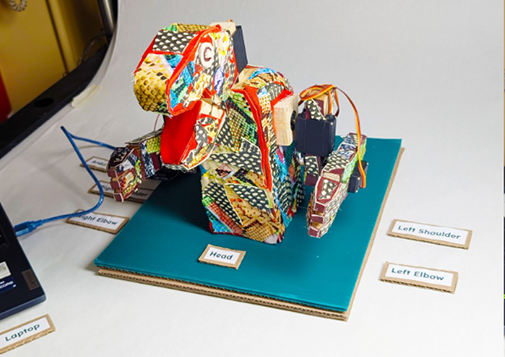 Design a playable, repairable animatronic emulating a 3D reconstruction of a dinosaur (Maip macrothorax) and leveraging four servo motors.